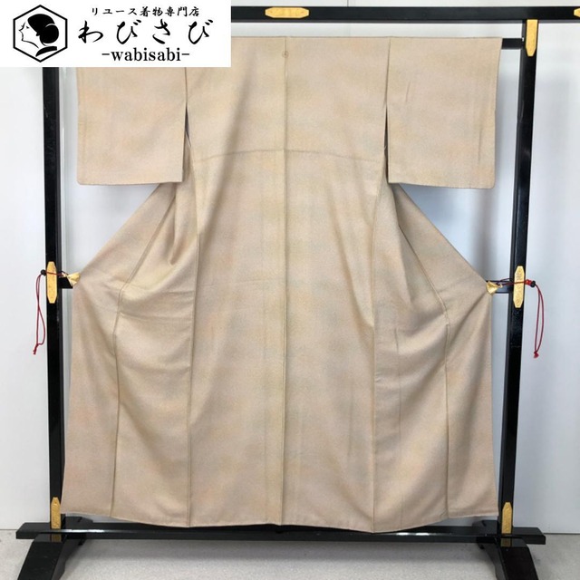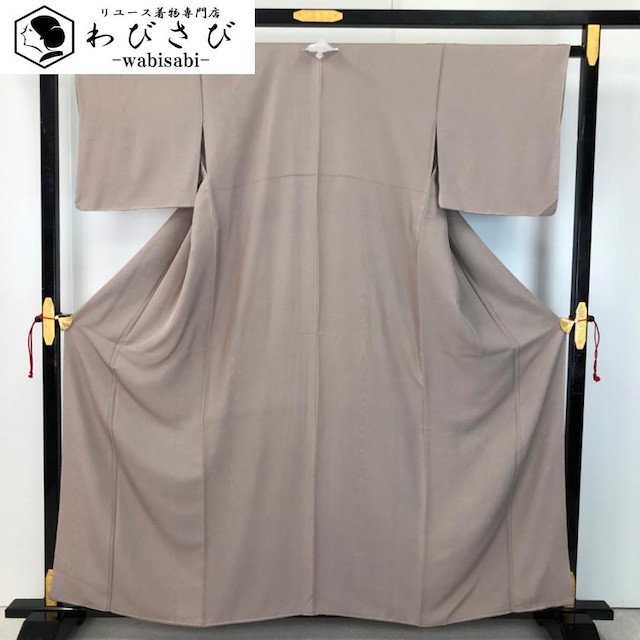色無地 木目模様 桜鼠色 ガード加工 しつけ糸 K-5558 着物 きもの kimono 和服 和装 中古 リサイクル着物 【送料無料】