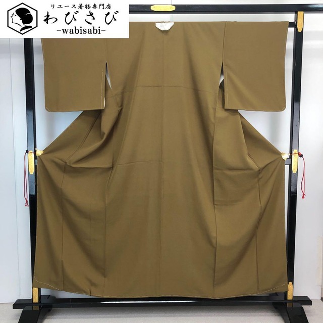 単衣 色無地 真鍮色 縮緬 しつけ糸 トールサイズ K-5617 着物 きもの kimono 和服 和装 中古 リサイクル着物 【送料無料】