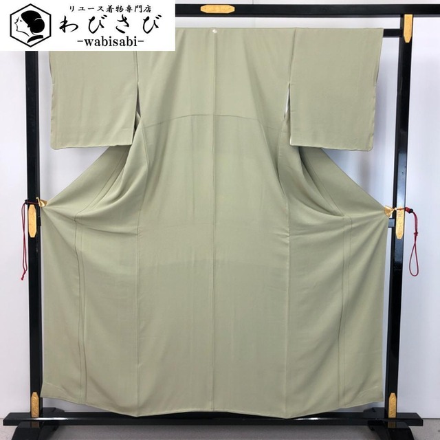 -説明- 色無地のお着物です。 裏葉色の素敵なお品でございます。 -状態- 【A】目立つ汚れなど無く状態の良いお品です。 しつけ糸ございます。 未使用品ですが背中心裾上辺りにうっすら写真のような点アクございます。 -サイズ(cm)- 身丈:160 裄:64 袖幅:32.5 袖丈:47 前幅:25.5 後幅:30.5 衽幅:15.5 裄出身頃:1 裄出袖:4 内揚:5 -仕立- 袷 広衿 衿:スナップ 一つ紋 -素材- 正絹 -管理番号- K-5520