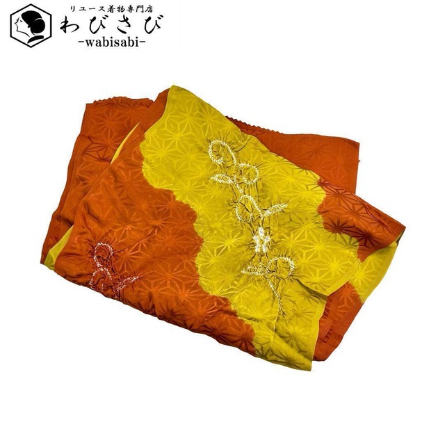 和装小物 帯揚げ 正絹 絞りに麻の葉模様 橙色 C-5422 着物 きもの kimono 和服 和装 中古 リサイクル着物 【送料無料】