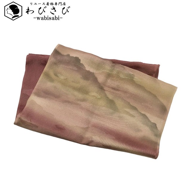 和装小物 帯揚げ 正絹 綸子 抽象模様 暈し 梅重色 C-6190 着物 きもの kimono 和服 和装 中古 リサイクル着物 【送料無料】