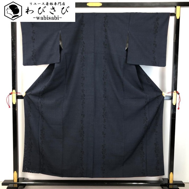 紬着物 縦縞模様 蝶々 御召納戸色 K-4552 着物 きもの kimono 和服 和装 中古 リサイクル着物 【送料無料】