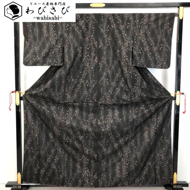 本場大島紬 染大島 付下げ 美しいモダンな花柄模様 金彩 石墨色 K-4241 着物 きもの kimono 和服 和装 中古 リサイクル着物 【送料無料】