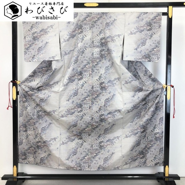 本場大島紬 白大島 辻が花 雲井鼠色 K-5316 着物 きもの kimono 和服 和装 中古 リサイクル着物 【送料無料】