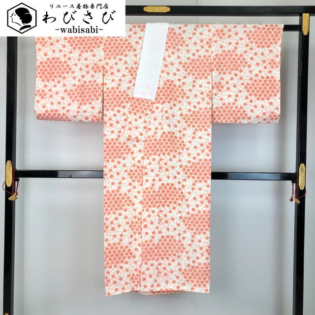 長襦袢 単衣 矢絣 朱色 半衿付 J-357 着物 きもの kimono 和服 和装 中古 リサイクル着物 【送料無料】