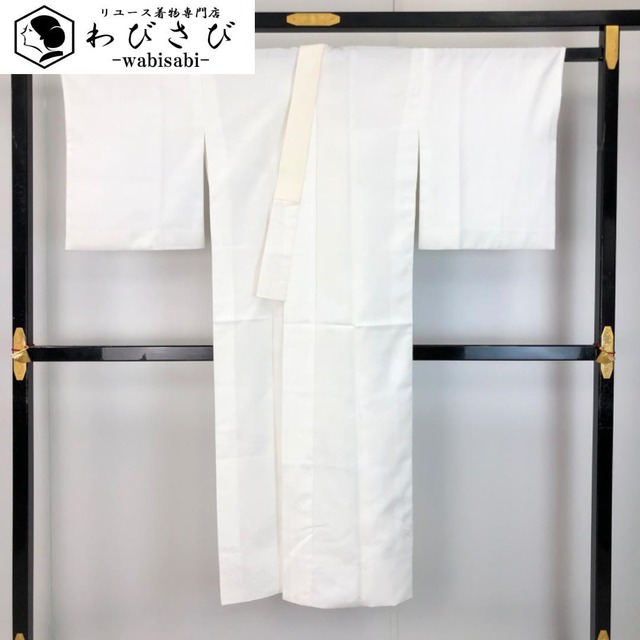 長襦袢 単衣 遠山模様 卯の花色 紗綾形地模様 J-301 着物 きもの kimono 和服 和装 中古 リサイクル着物 【送料無料】