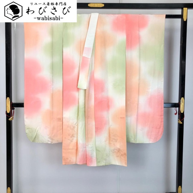 長襦袢 振袖 暈し 花亀甲 花模様 乙女色 J-365 着物 きもの kimono 和服 和装 中古 リサイクル着物 【送料無料】