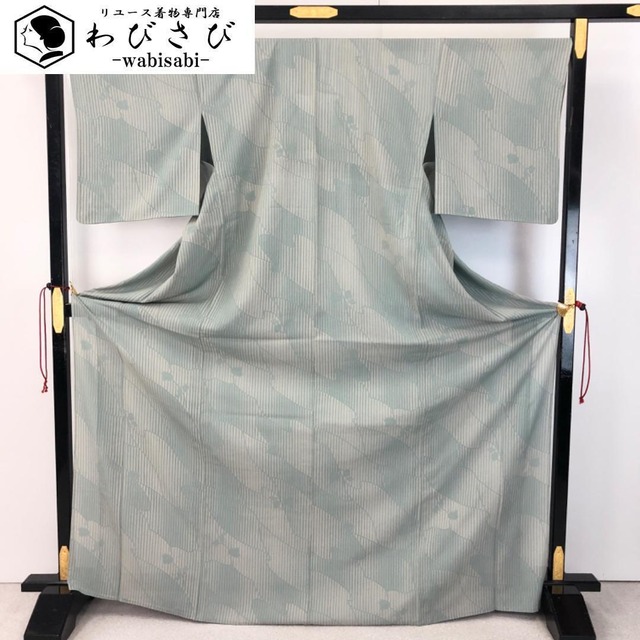 夏着物 絽 色無地 豆青色 ガード加工 K-5157 着物 きもの kimono 和服 和装 中古 リサイクル着物 【送料無料】