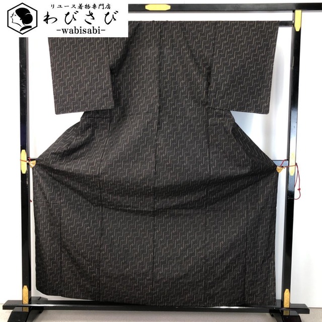 紗合せ 小紋 黒地に斜め模様 トールサイズ K-2532 着物 きもの kimono 和服 和装 中古 リサイクル着物 【送料無料】
