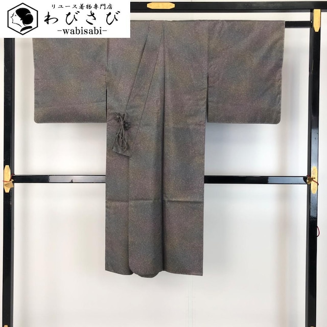 -説明- 道中着のお着物です。 燻銀色ベースのお色味に叩き染でデザインされた雰囲気の良い染大島の素敵なお品でございます。 -状態- 【S】未使用で保管されていたお品です。 しつけ糸ございます。 ガード加工。 残布付。 -サイズ(cm)- 身丈:117 裄:66 袖幅:34 袖丈:48 前幅:22 後幅:29.5 立衿:15.5 裄出身頃:2.5 裄出袖:1.5 内揚:0 -仕立- 袷 紋無 -素材- 正絹 -管理番号- H-4109