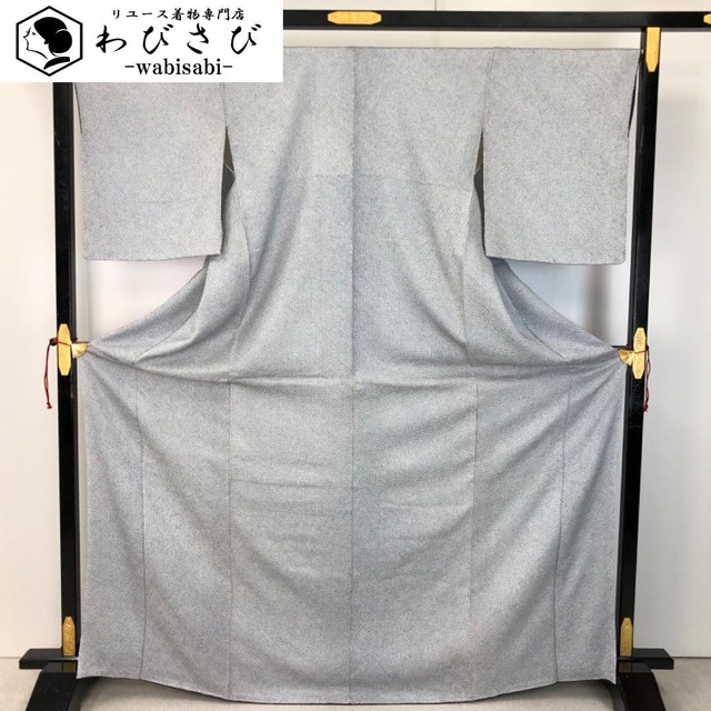 小紋 総絞り 白銅色 トールサイズ ガード加工 K-5552 着物 きもの kimono 和服 和装 中古 リサイクル着物 【送料無料】