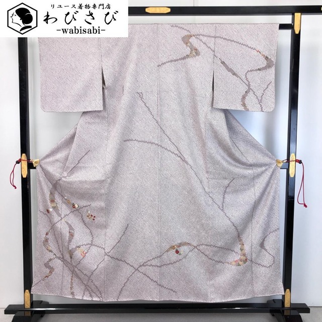 -説明- 総絞り小紋のお着物です。 紫鼠色ベースの品のあるお色味に雰囲気の良い絞り柄の花柄模様がデザインされた素敵な柄裄のお品でございます。 -状態- 【A】目立つ汚れなど無く状態の良いお品です。 後左身頃、左衽に写真のように極僅かなアクございます。 八掛うっすらヤケございます。 -サイズ(cm)- 身丈:160 裄:66 袖幅:34 袖丈:49 前幅:24 後幅:28.5 衽幅:15 裄出身頃:0 裄出袖:0 内揚:4.5 -仕立- 袷 広衿 衿:スナップ 紋無 -素材- 正絹 -管理番号- K-5148