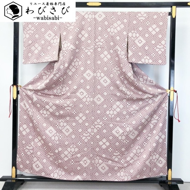 小紋 総絞り 菱形模様 蒲萄色 K-4618 着物 きもの kimono 和服 和装 中古 リサイクル着物 【送料無料】