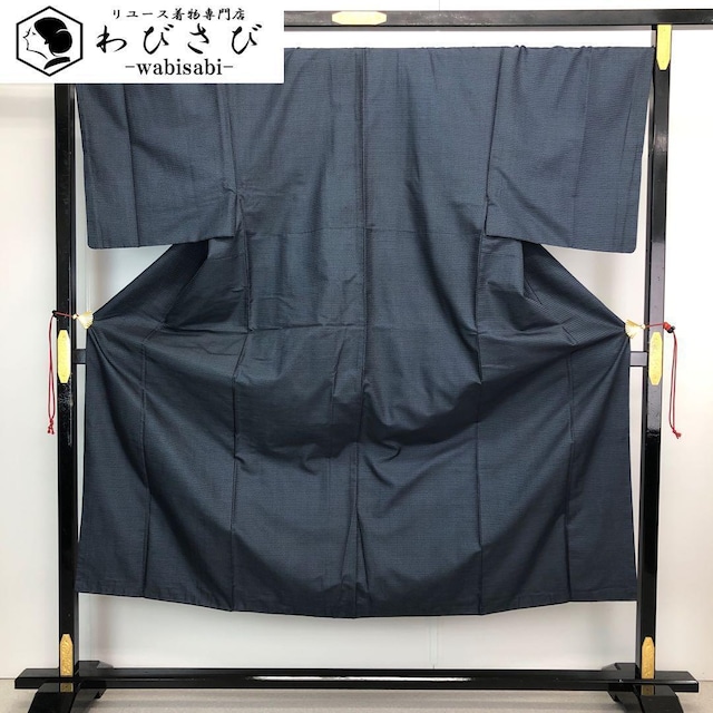 男着物 アンサンブル 紬 無地 藍鉄色 しつけ糸 M-1092 着物 きもの kimono 和服 和装 中古 リサイクル着物 【送料無料】