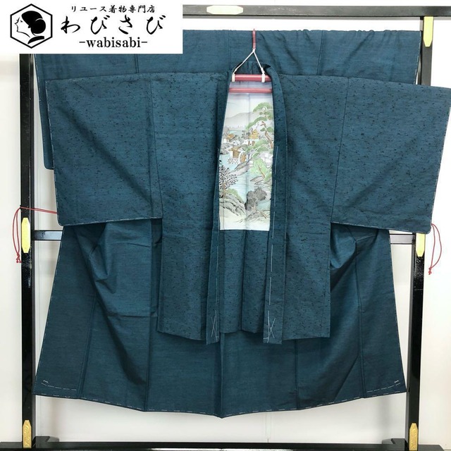 -説明- 紳士着物、羽織&着物のアンサンブルです。 藍鉄色の雰囲気の良いお色味、着物は柔らかい紬、羽織は髭紬の素敵なお品でございます。 -状態- 【S】未使用で保管されていたお品です。 しつけ糸ございます。 残布付。 未使用保管品ですが、着物右前袖肩山あたりにうっすら写真のような汚れございます。 羽織の衿裏あたりにうっすら色移りのような汚れございます。 -サイズ(cm)- 着物サイズ 身丈:141 裄:70 袖幅:36.5 袖丈:51 前幅:26 後幅:30 裄出身頃:3 裄出袖:2 内揚:13.5 羽織サイズ 身丈:92 裄:71 袖幅:36.5 袖丈:52 前幅:20 後幅:30 裄出身頃:2.5 裄出袖:1.5 -仕立- 袷 -素材- 正絹 -管理番号- M-1092
