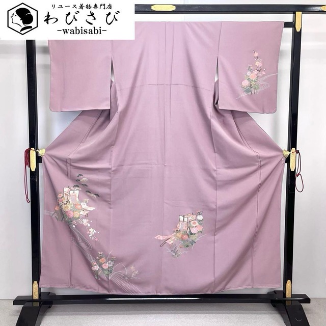 付下げ 総刺子 紬 流水模様 灰紫色 K-3271 着物 きもの kimono 和服 和装 中古 リサイクル着物 【送料無料】