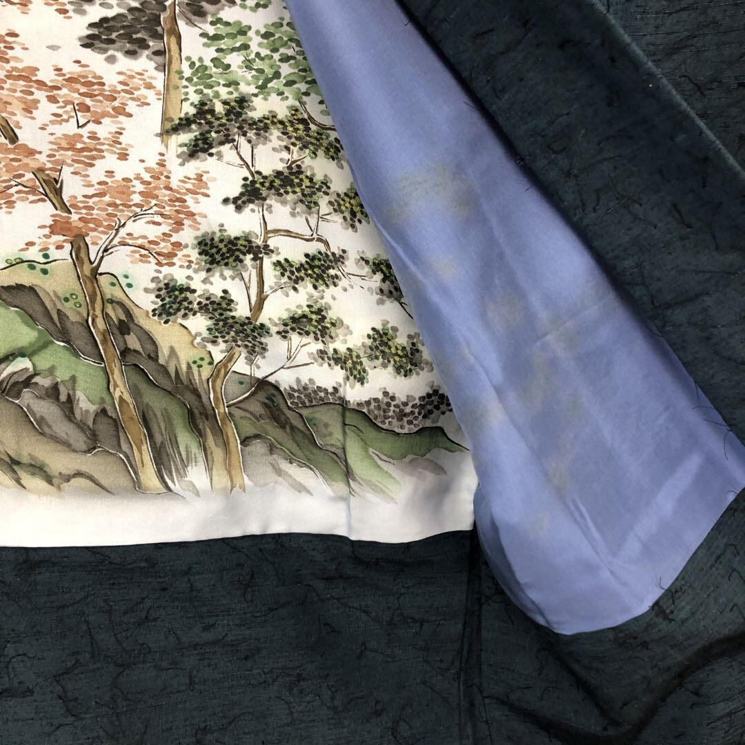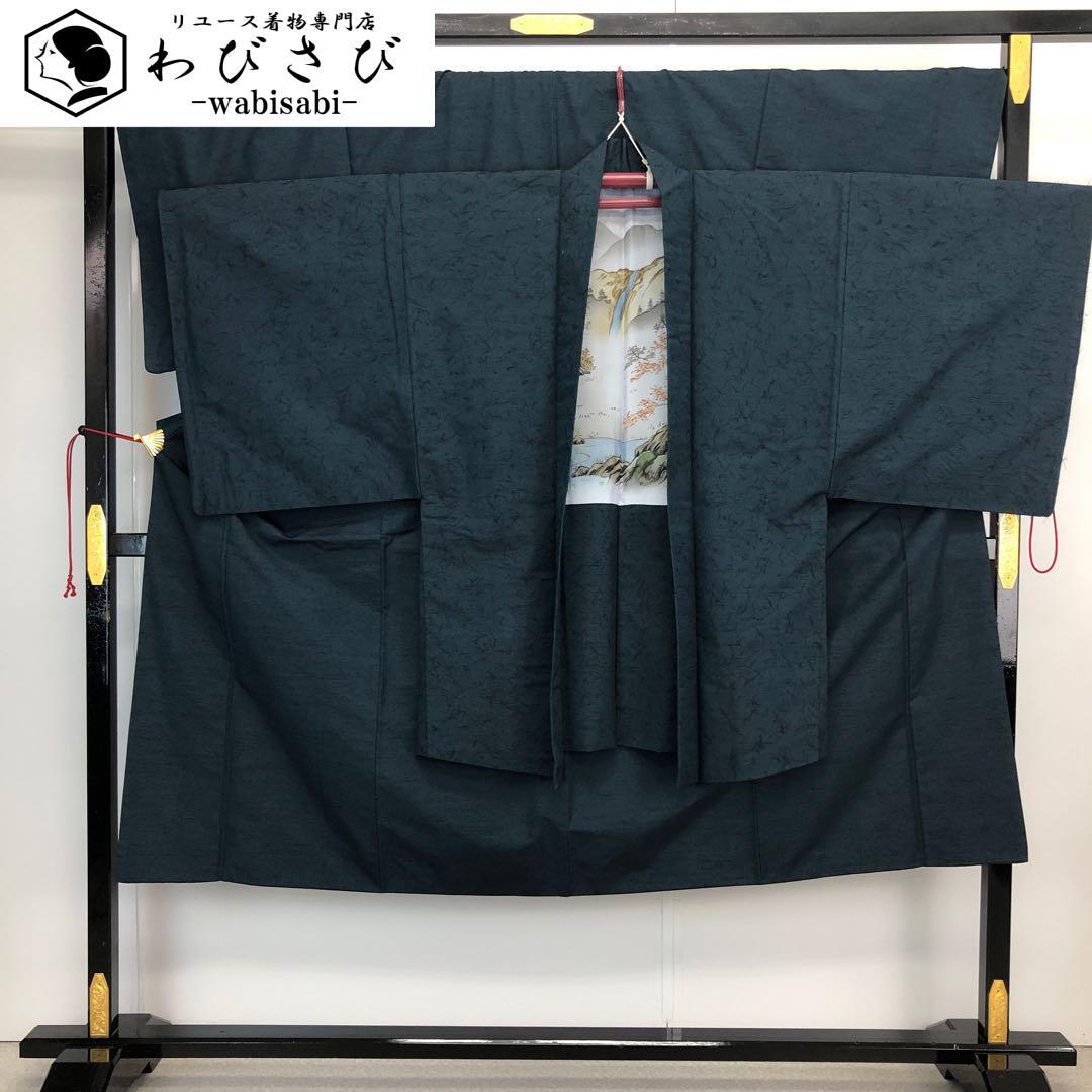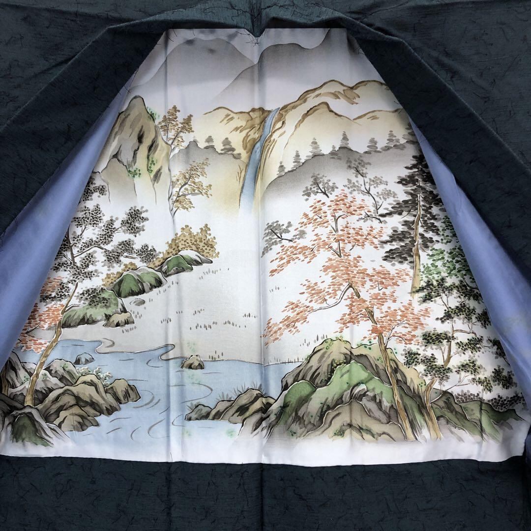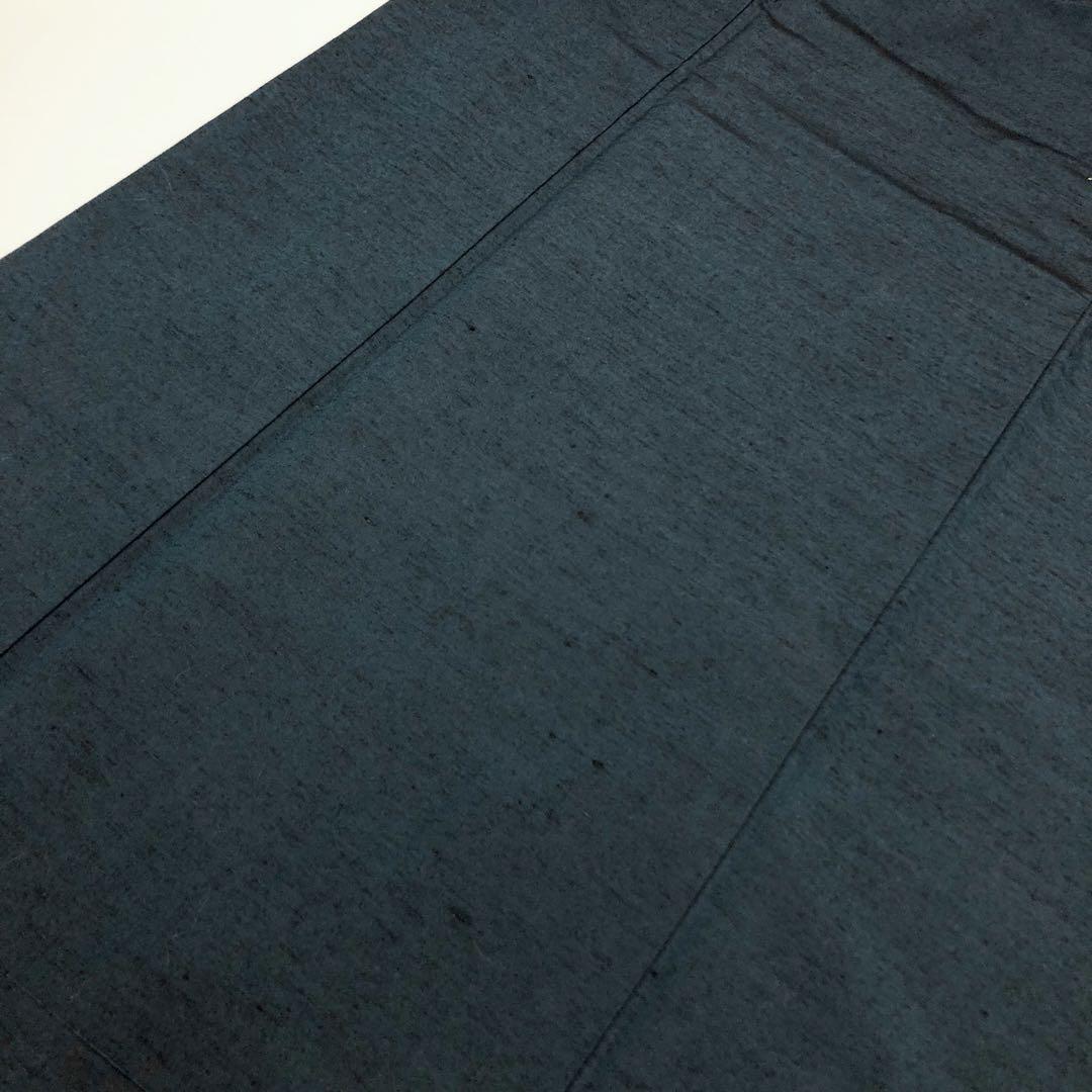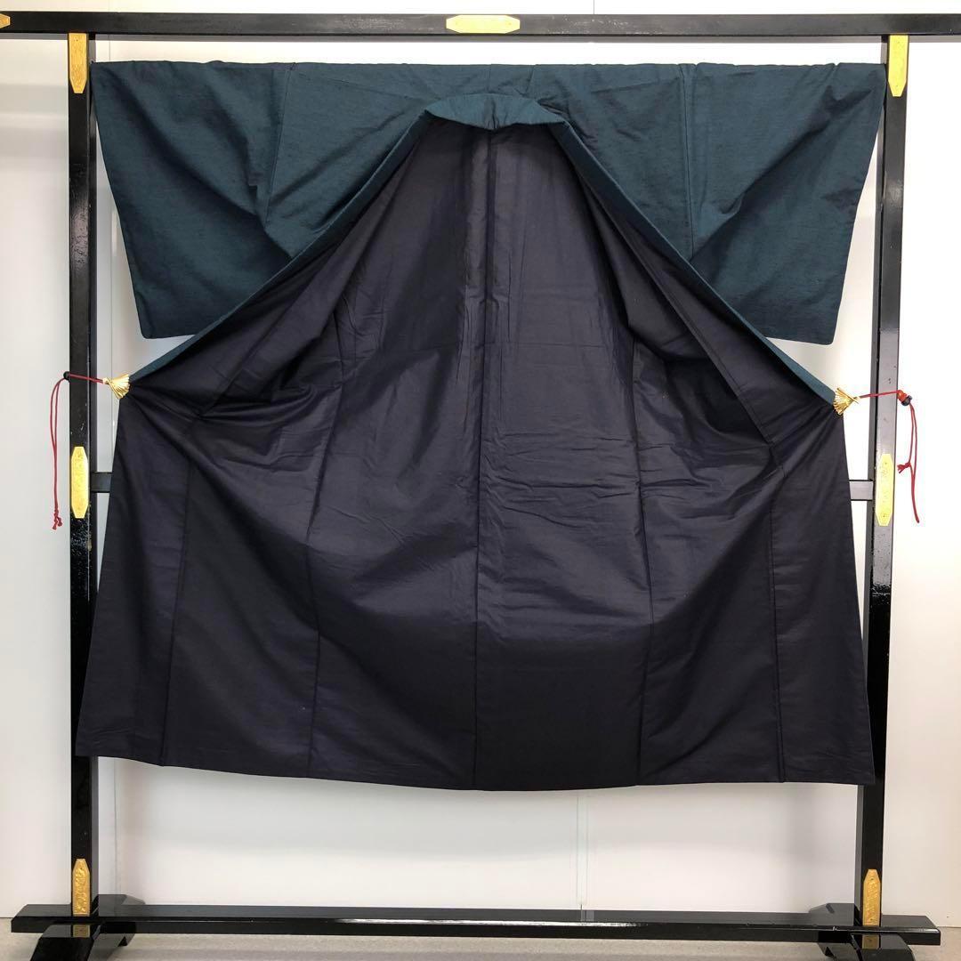 海松藍色の雰囲気の良いお色味の紬地、羽織りは髭紬の雰囲気の良い素敵なお品でございます。