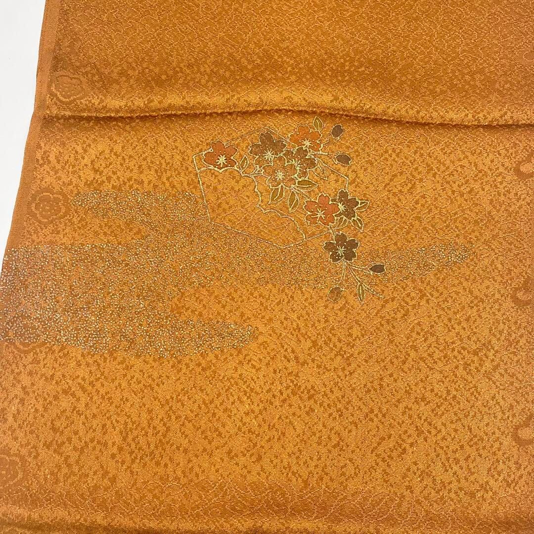 丁字色のお色味に花模様がデザインされた品のある素敵な柄裄のお品でございます。