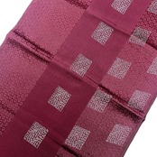茄子紺色のお色味に四角模様がデザインされた品のある素敵な柄裄のお品でございます。