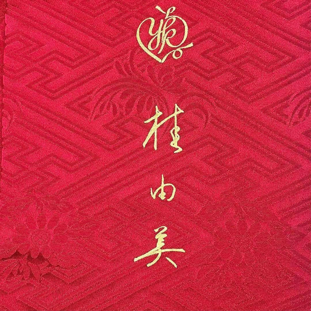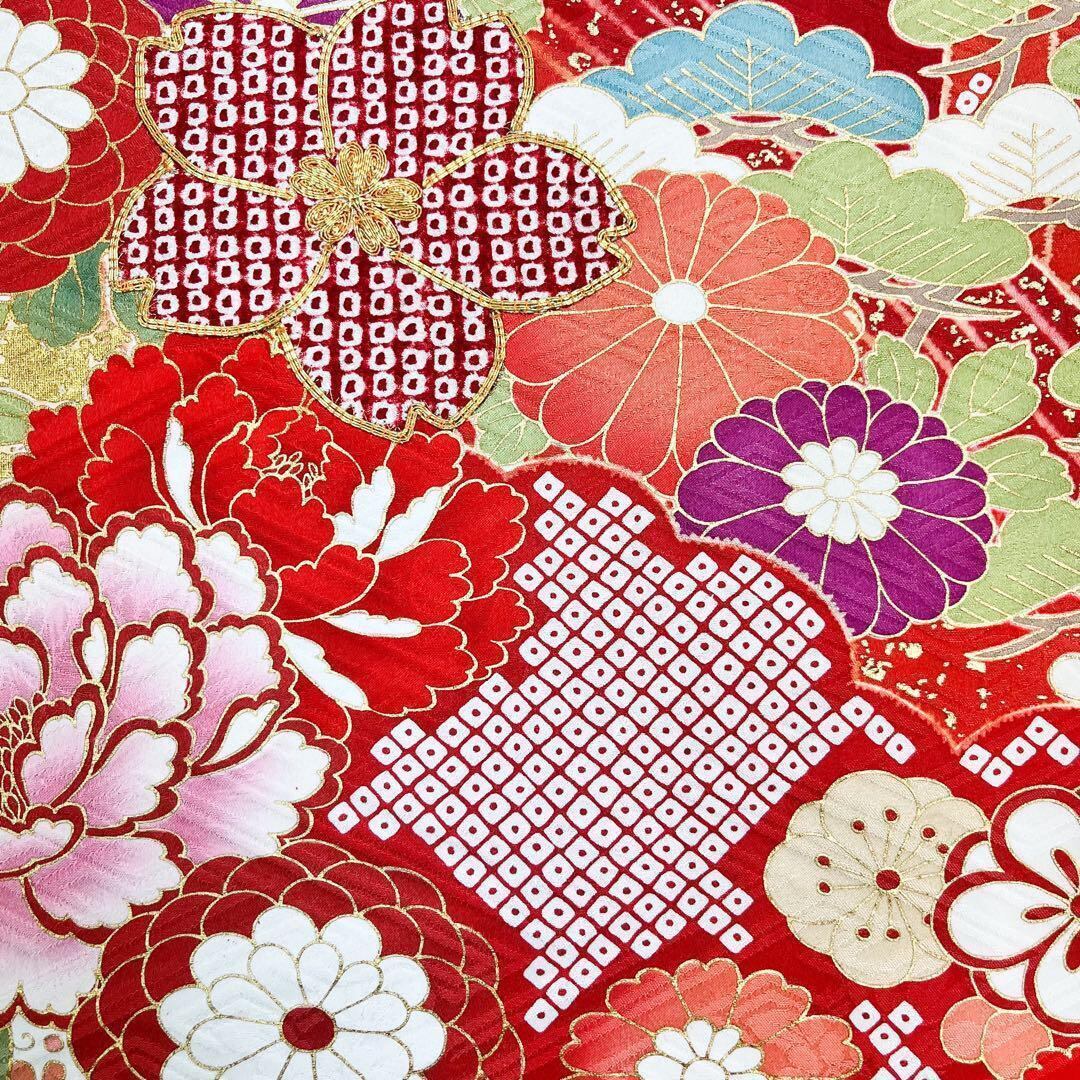 真紅色の鮮やかな赤色に華やかで美しい色彩の花模様の柄裄がデザインされた素敵なお品でございます。