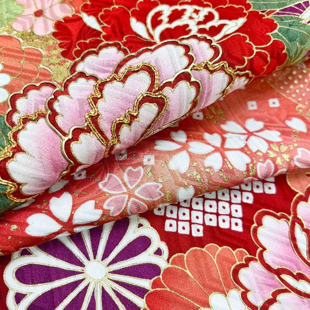 振袖 桂由美 美しい花模様 金駒刺繍 金彩 真紅色 トールサイズ K-4427 着物 きもの kimono 和服 和装 中古 リサイクル着物 【送料無料】