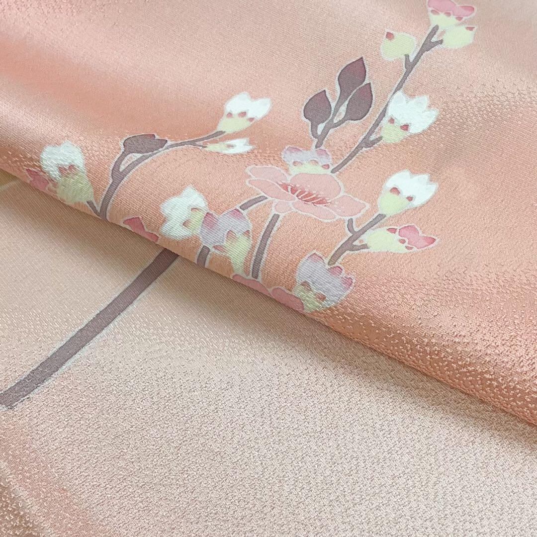 珊瑚色のお色味に花模様がデザインされた加賀友禅の品のある素敵な柄裄のお品でございます。