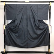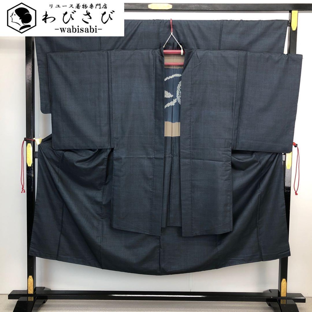 藍色のお色味に四角い織模様、羽裏も雰囲気の良い絞り柄がデザインされた素敵なお品でございます。