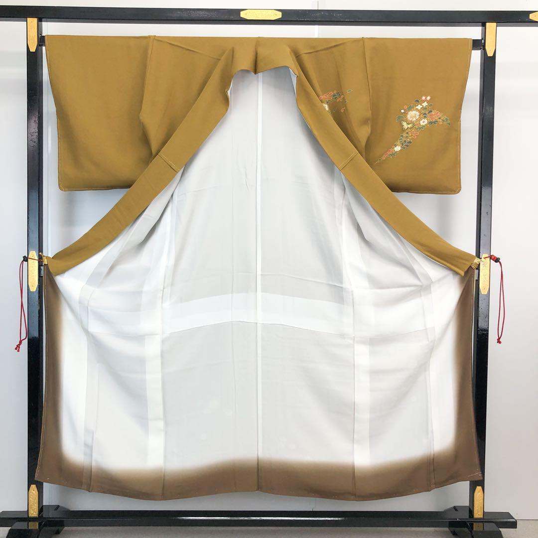 黄土色のお色味に暈し、一廉辻が花と名高い上品な雰囲気の辻が花絞りがデザインされた素敵な柄裄のお品でございます。