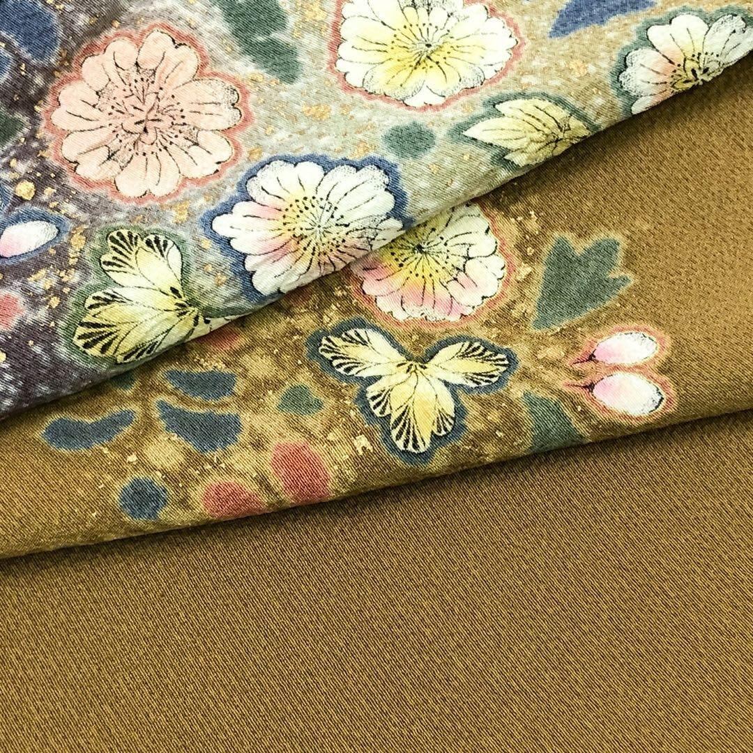 付下げ 吉乃一廉 辻が花模様 金彩 ガード加工 黄土色 しつけ糸 K-4434 着物 きもの kimono 和服 和装 中古 リサイクル着物 【送料無料】