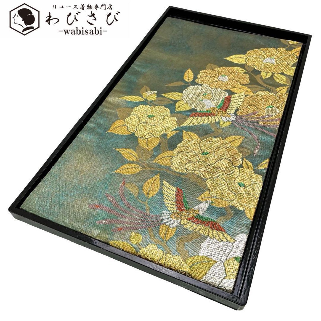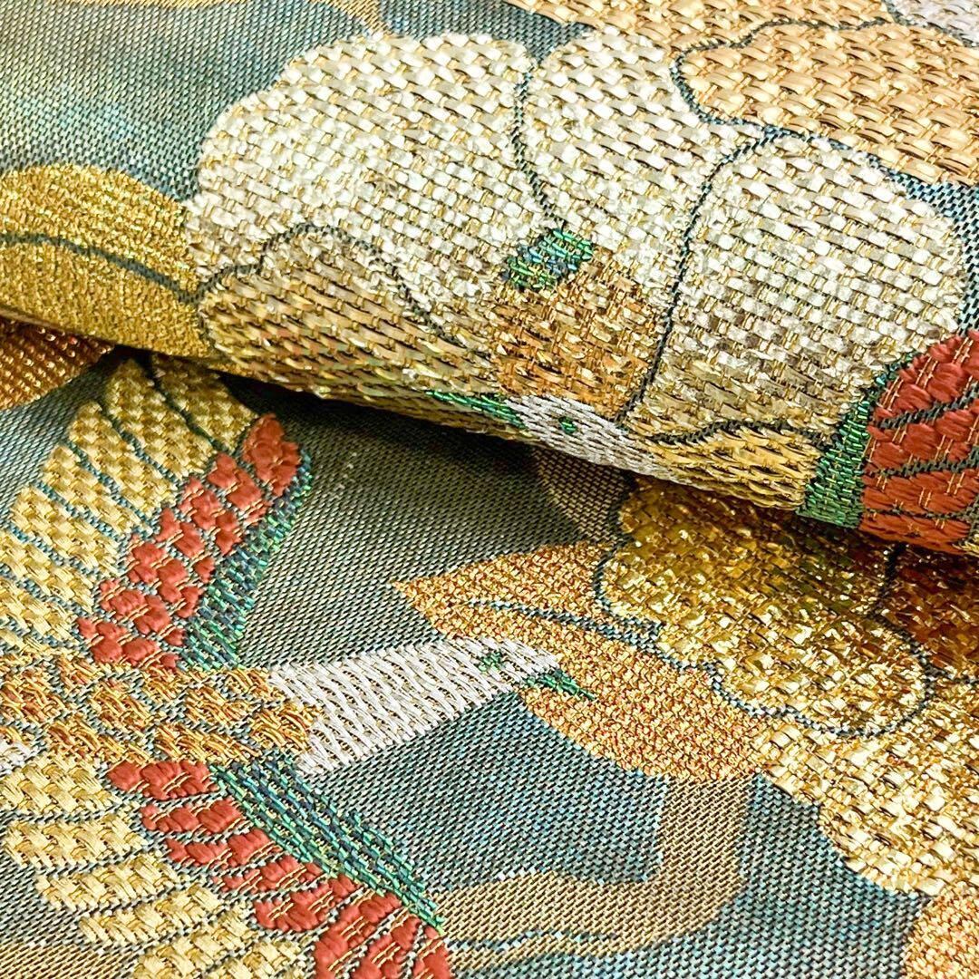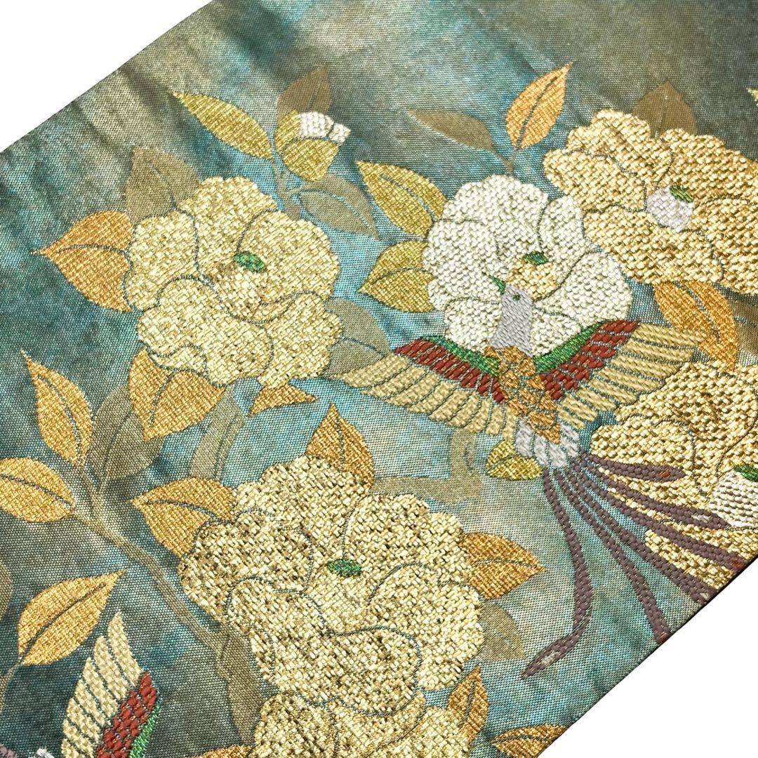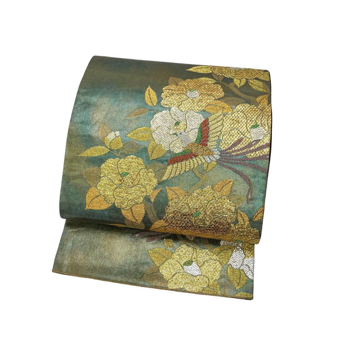 千種色の上品なお色味に椿の花に花喰い鳥の柄裄がデザインされた素敵なお品でございます。
