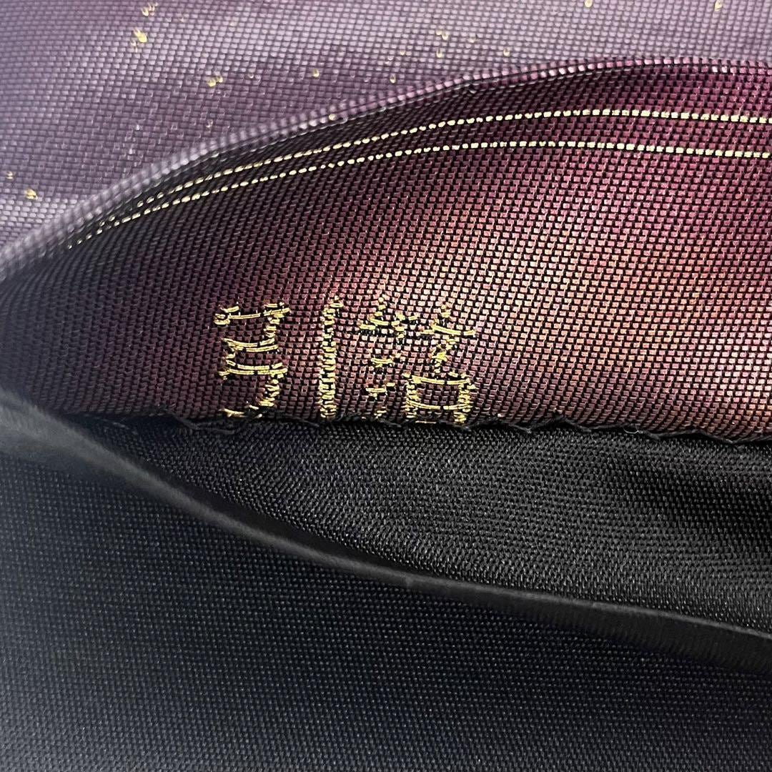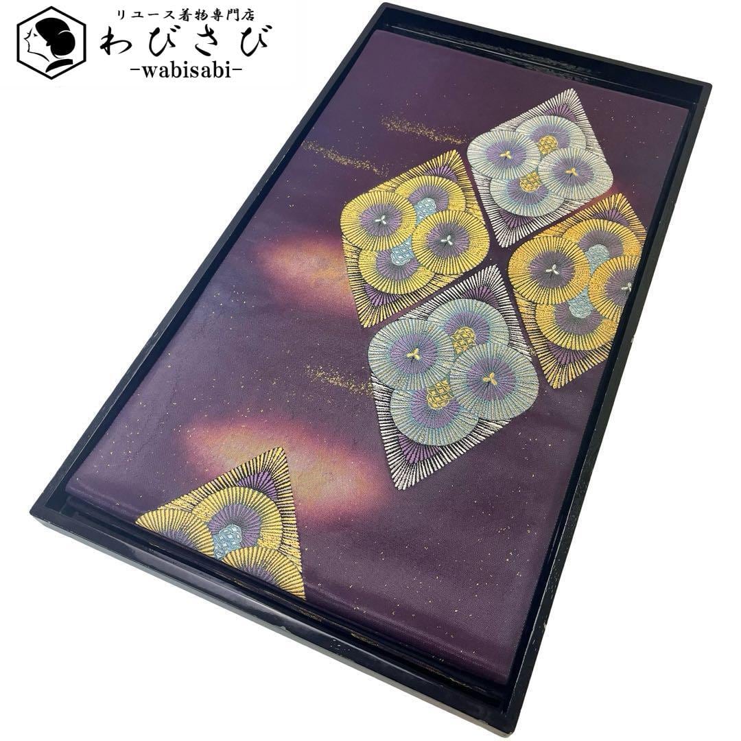 滅紫色ベースのお色味に引箔、縦柄の松菱模様がデザインされた素敵な柄裄のお品でございます。