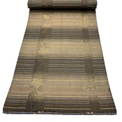 紫、青、緑などのお色味に変わり格子、縦柄の桜の花模様、麻の葉の柄裄がデザインされた素敵なお品でございます。
