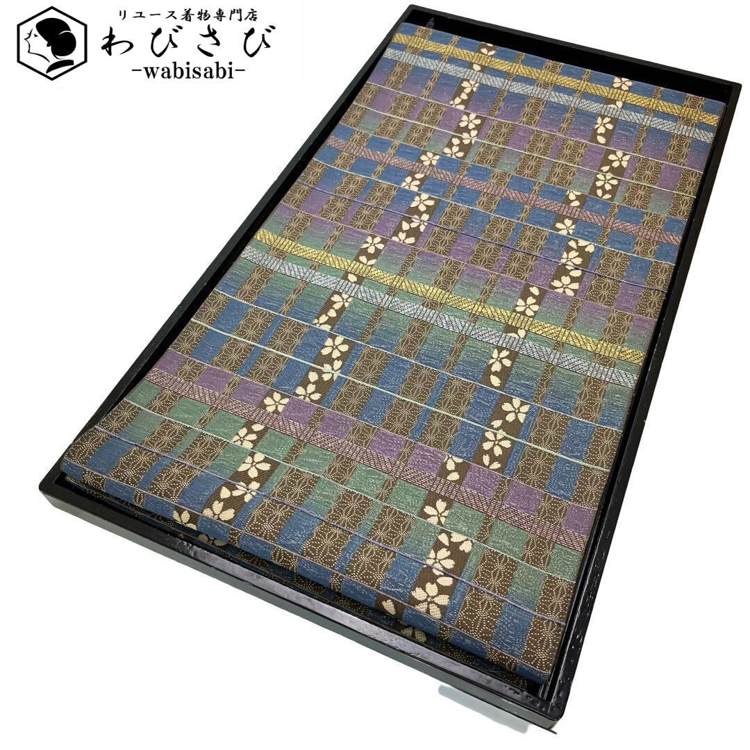 袋帯 変わり格子に桜の花模様 麻の葉 ガード加工 O-4745 着物 きもの kimono 和服 和装 中古 リサイクル着物 【送料無料】