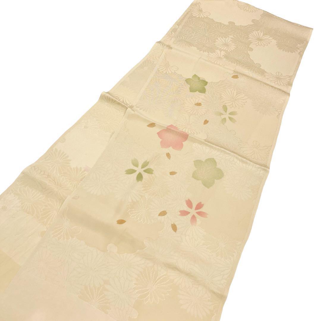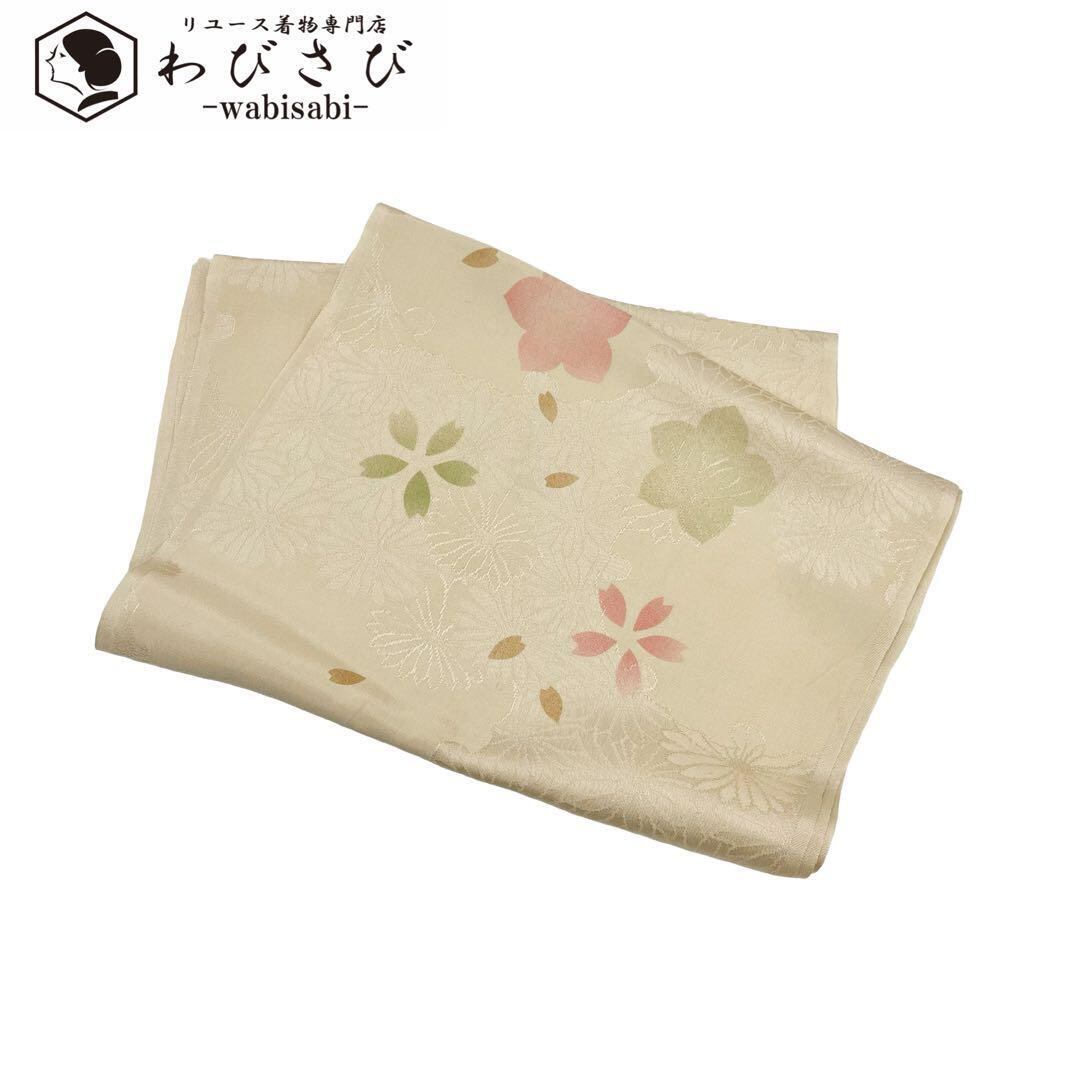 和装小物 帯揚げ 正絹 綸子 花模様 香色 C-5575 着物 きもの kimono 和服 和装 中古 リサイクル着物 【送料無料】