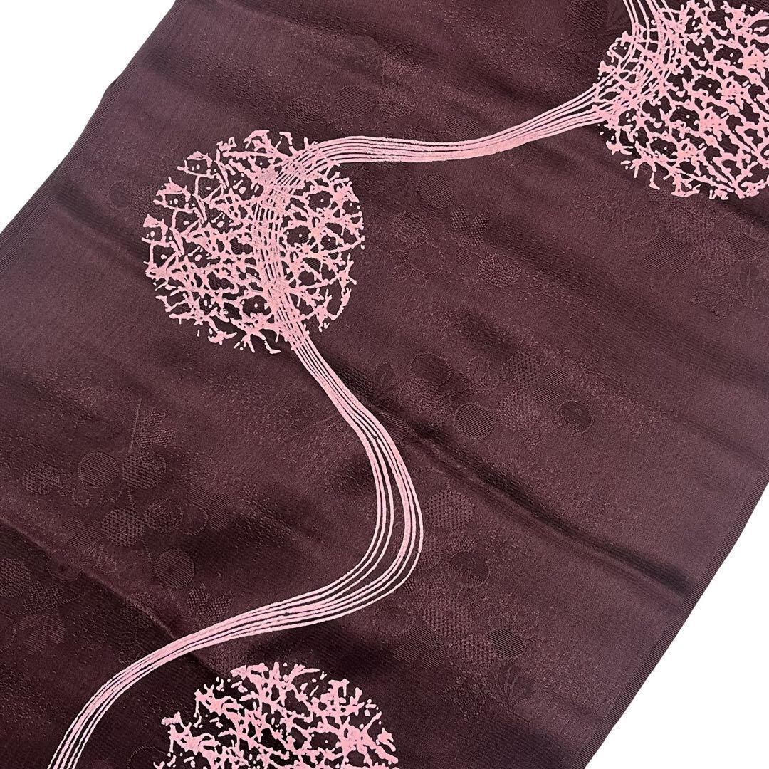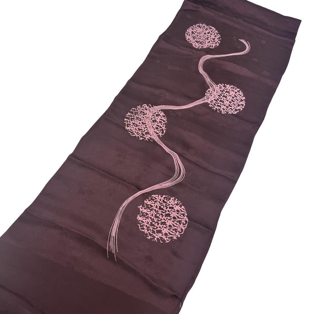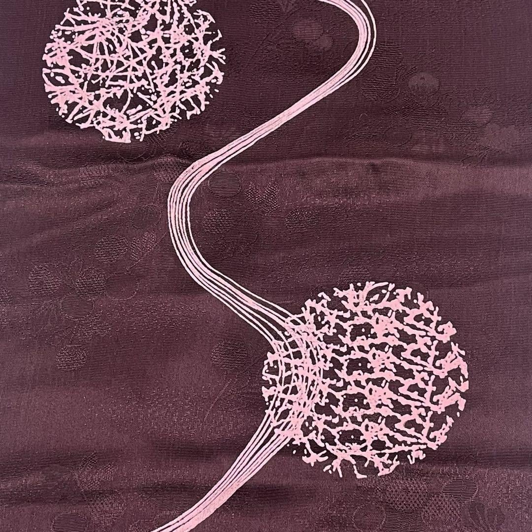 紫紺色のお色味に丸に抽象曲線模様がデザインされた品のある素敵な柄裄のお品でございます。