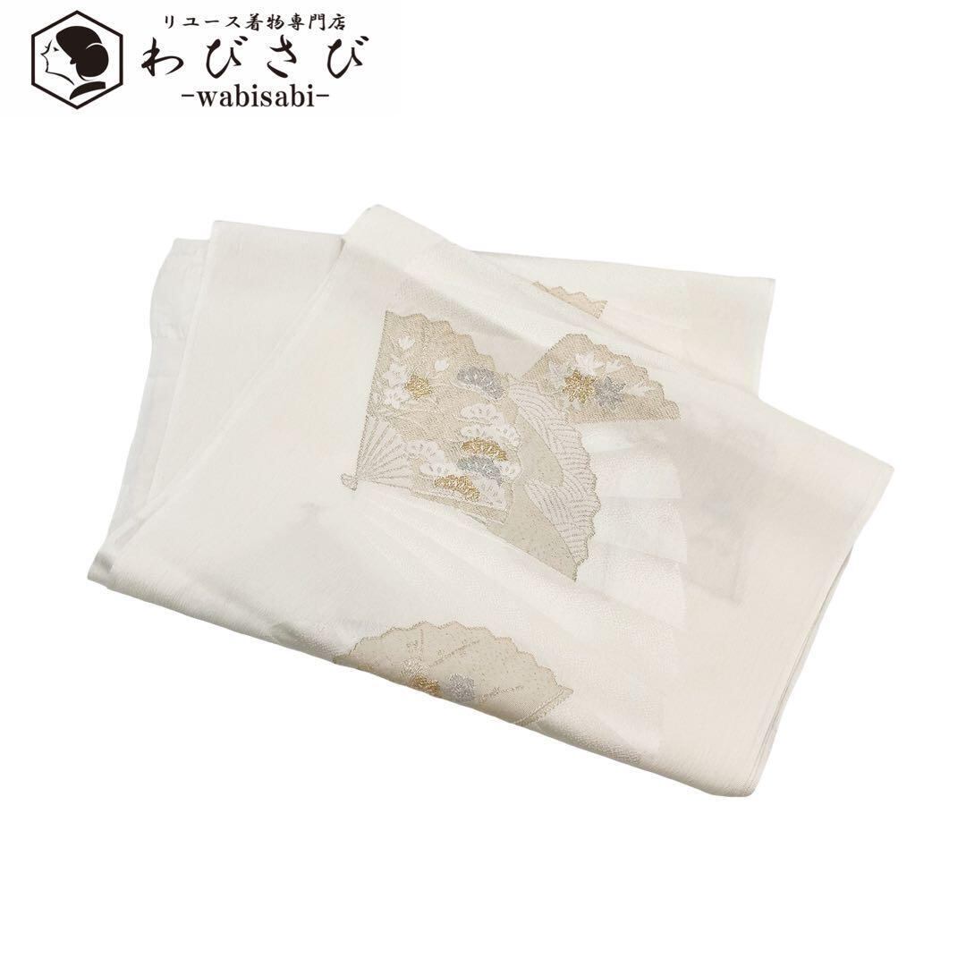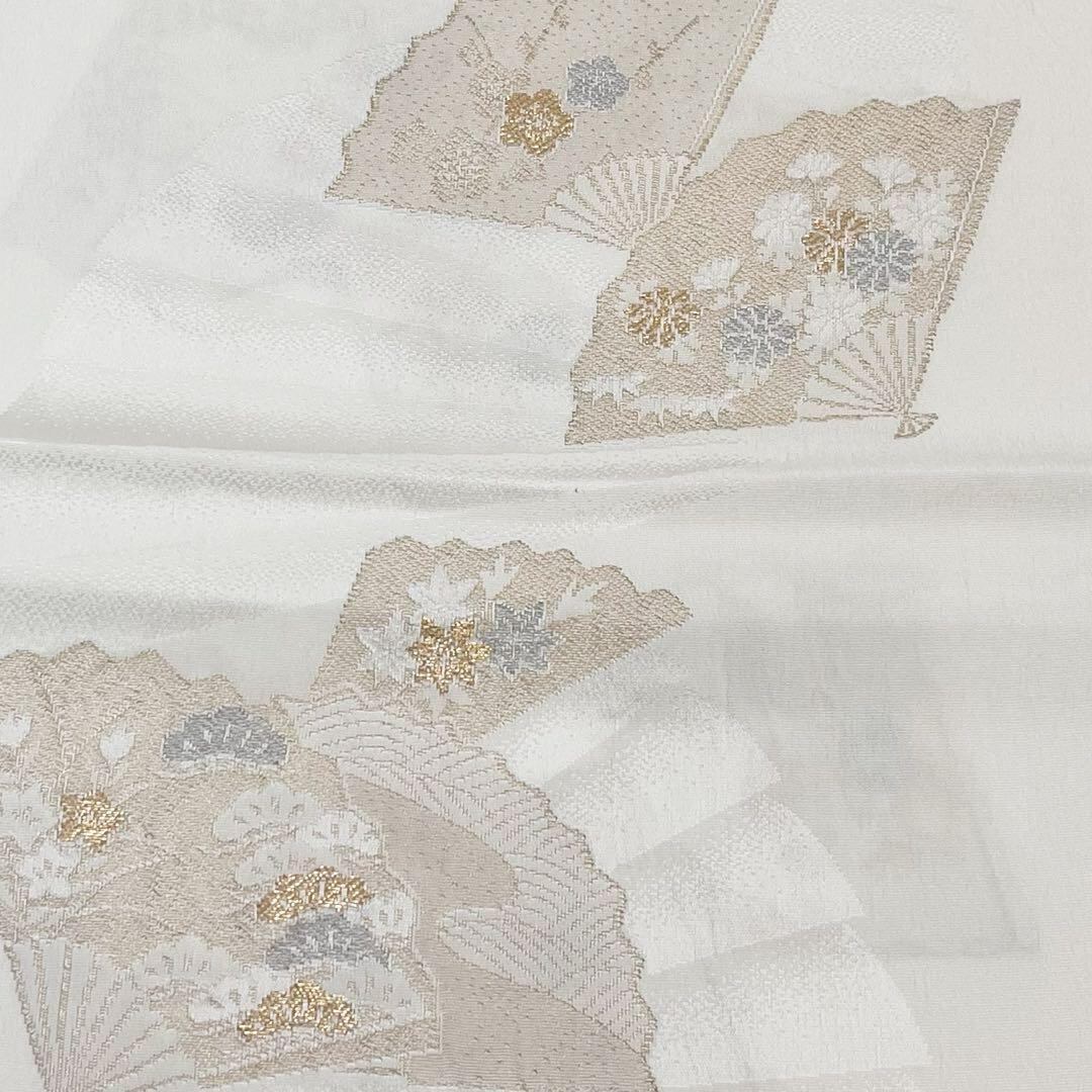 和装小物 帯揚げ 正絹 扇子に花模様 乳白色 礼装 金銀糸 C-5579 着物 きもの kimono 和服 和装 中古 リサイクル着物 【送料無料】
