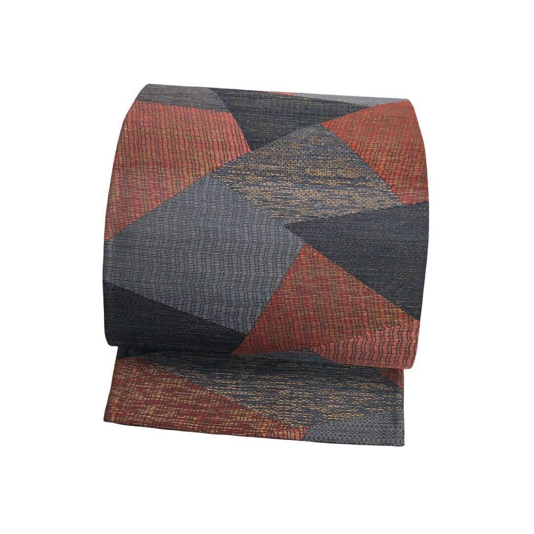 袋帯 多角形織模様 金糸 青墨色 O-4753 着物 きもの kimono 和服 和装 中古 リサイクル着物 【送料無料】