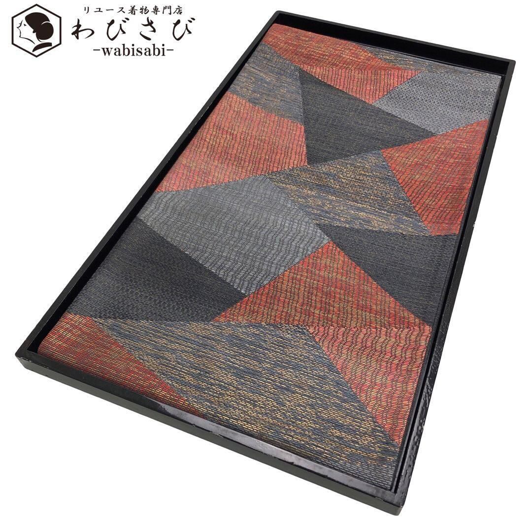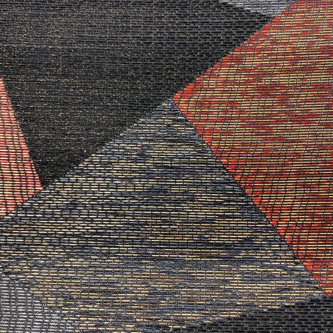 青墨色ベースのお色に落ち着いた色彩の多角形の織模様がデザインされた雰囲気の良い柄裄のお品でございます。