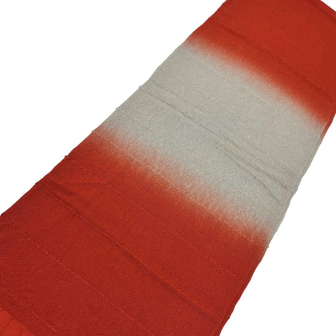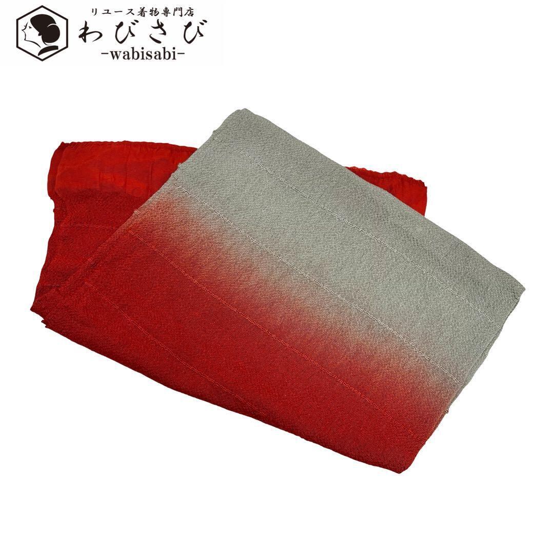 真紅色の落ち着いたお色味の縮緬、無地柄に美しい染め分けの素敵な帯揚げです。