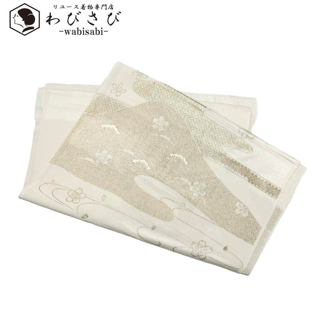 和装小物 帯揚げ 正絹 綸子 霧に小花模様 金彩 乳白色 C-5587 着物 きもの kimono 和服 和装 中古 リサイクル着物 【送料無料】