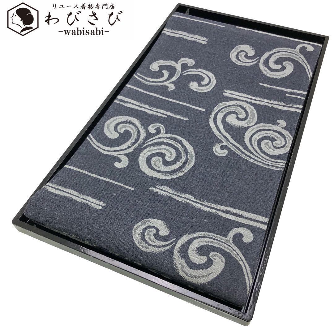 紺鳶色の落ち着きのあるお色味の紬地に雰囲気の良い抽象模様がデザインされた素敵なお品でございます。