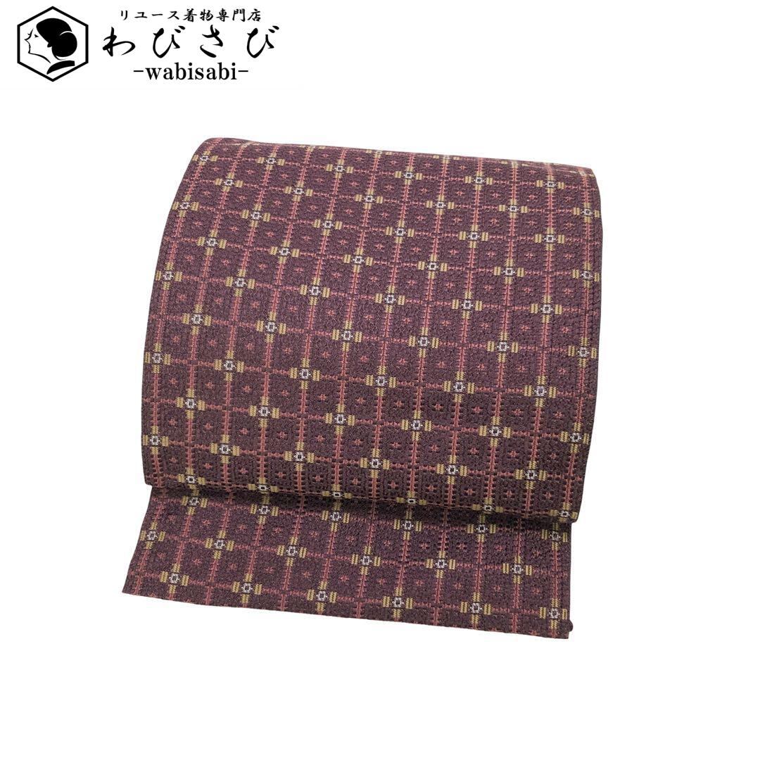 名古屋帯 博多織 恵比須細工 残布付 格子柄 抽象花模様小紫色 O-4766 着物 きもの kimono 和服 和装 中古 リサイクル着物 【送料無料】
