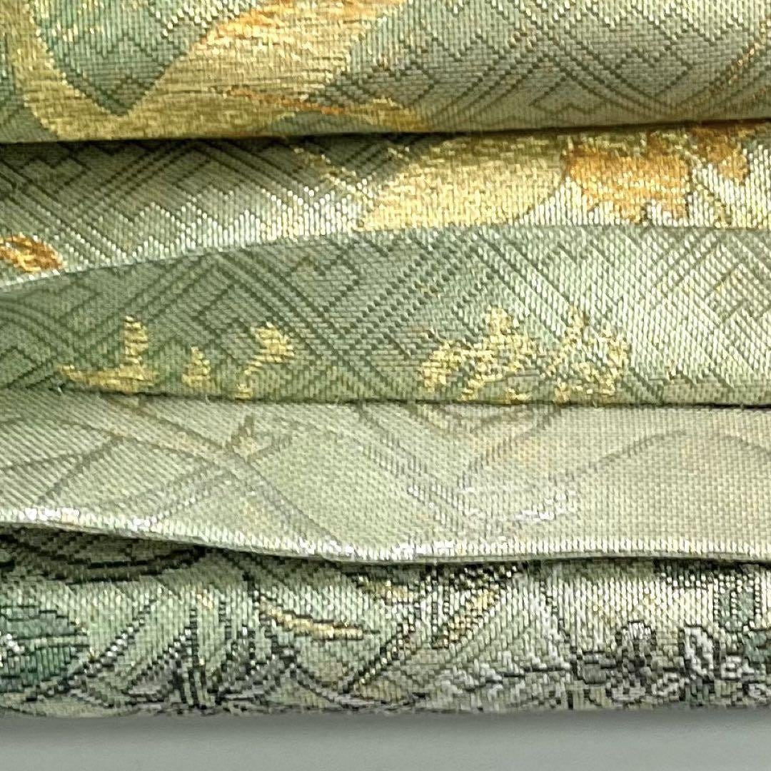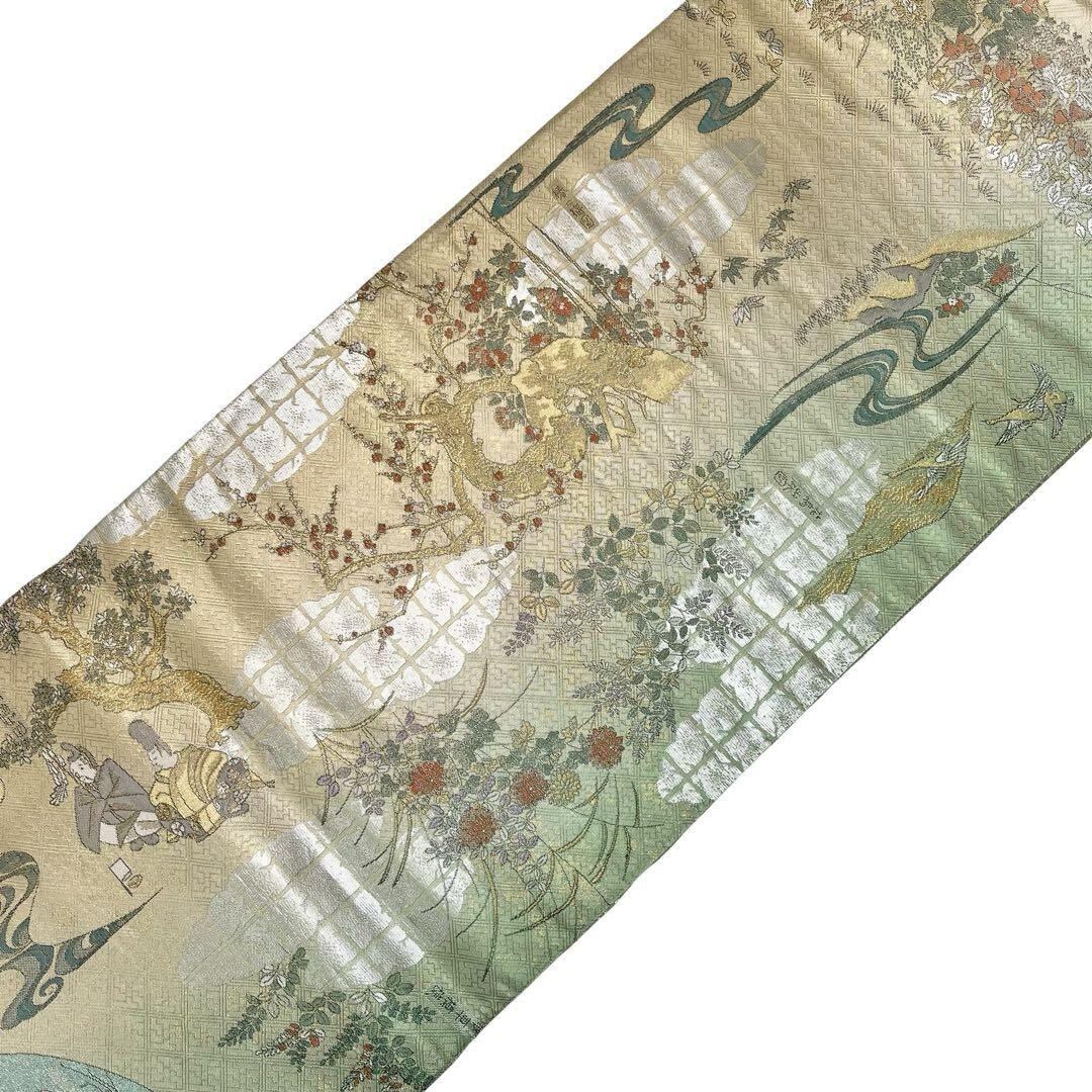 袋帯 松鶴 風景柄 風神雷神 馬 飛翔鶴 伊勢物語 金銀糸 金色 O-4660 着物 きもの kimono 和服 和装 中古 リサイクル着物 【送料無料】