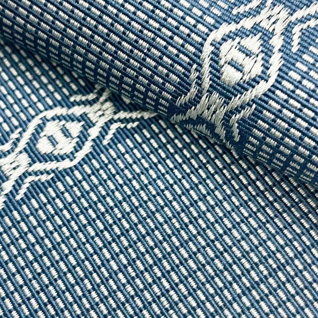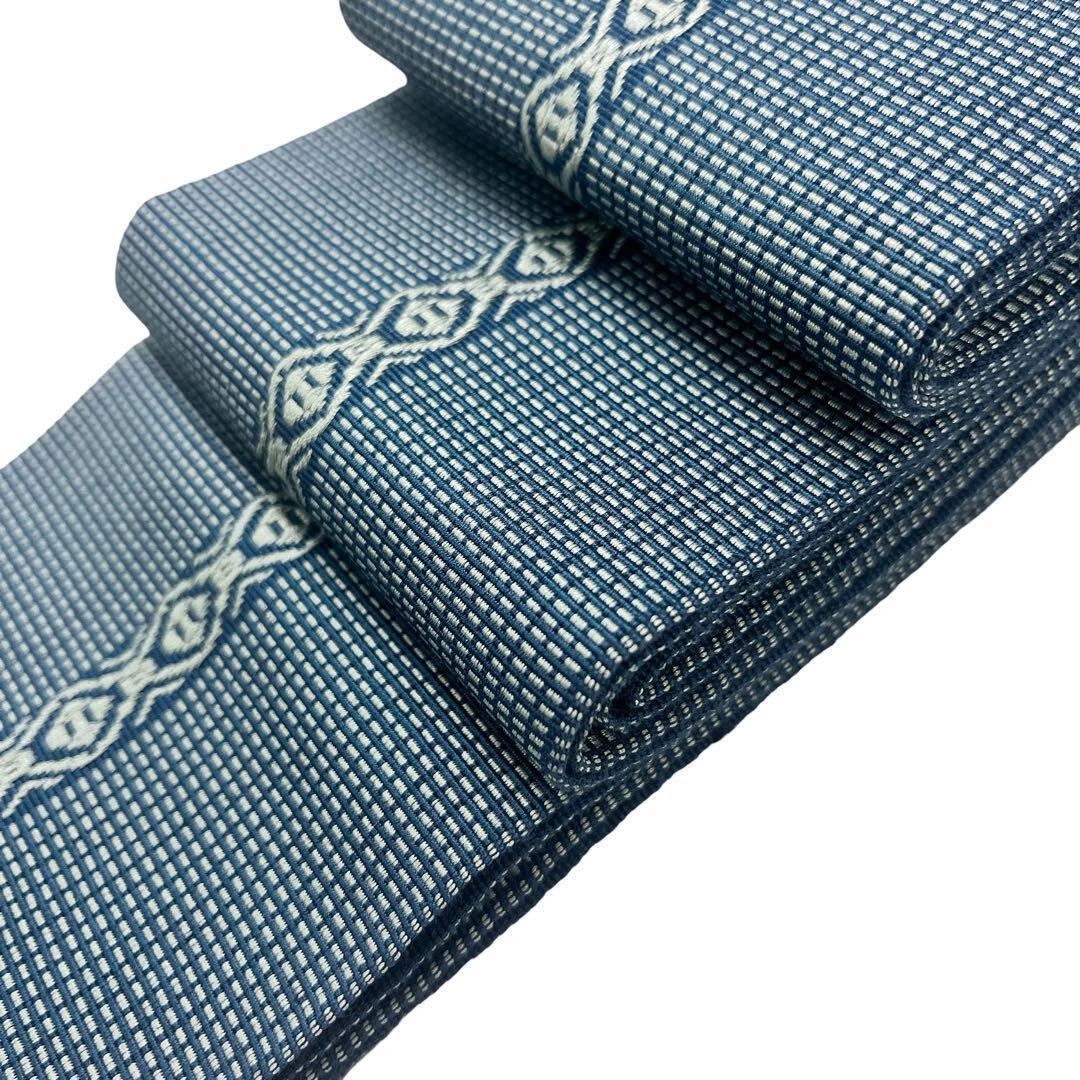 藍色のお色味に縦柄の織模様がデザインされた雰囲気の良い素敵なお品でございます。