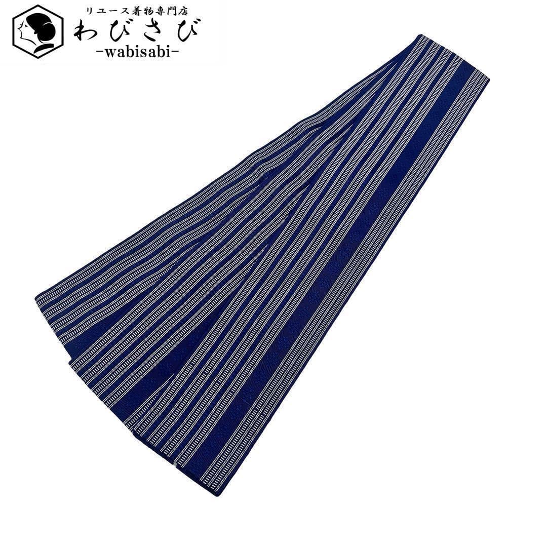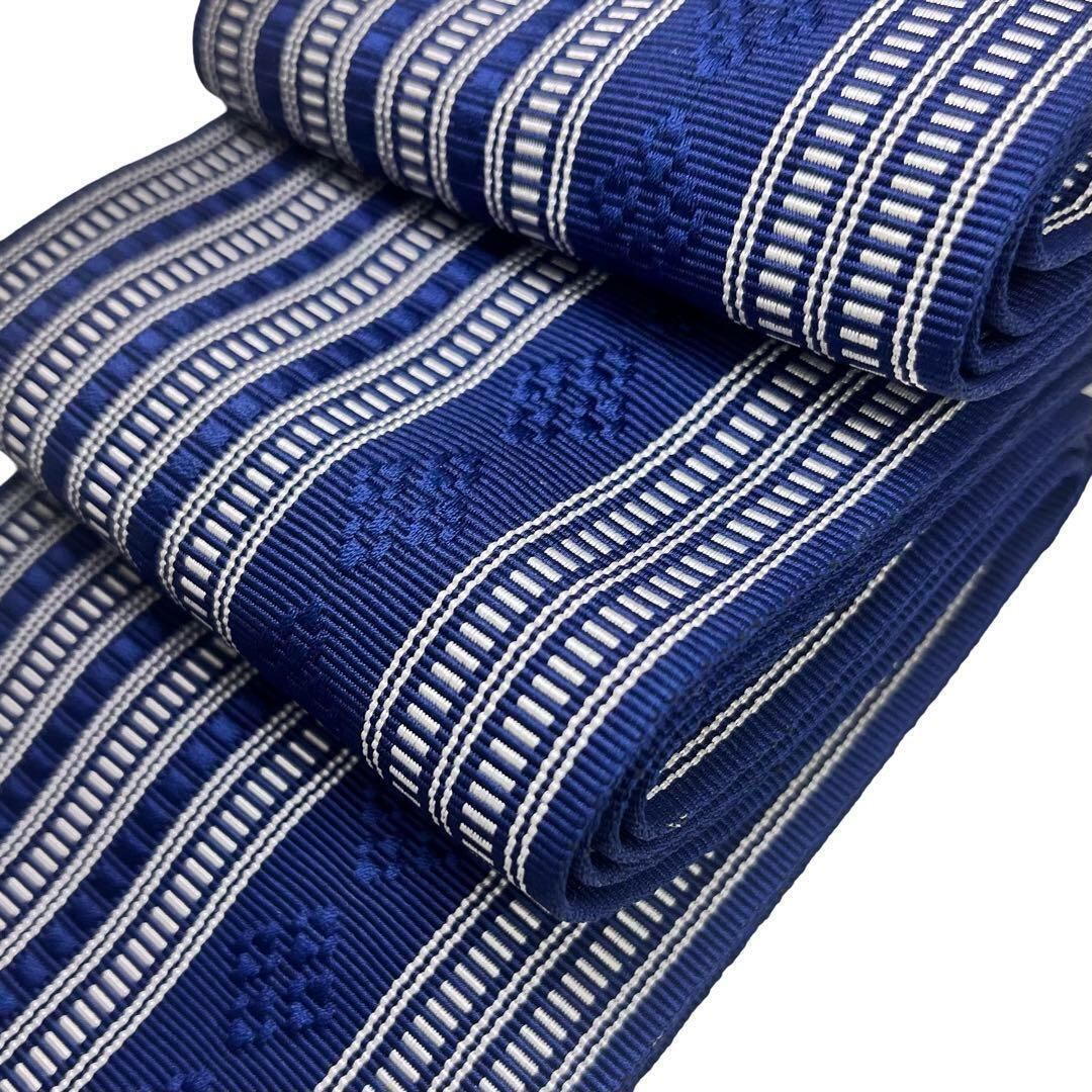 紺色のお色味に美しい縦柄の織模様がデザインされた素敵なお品でございます。
