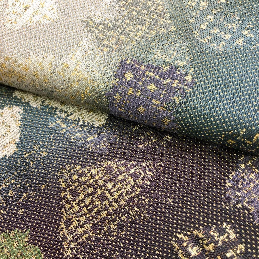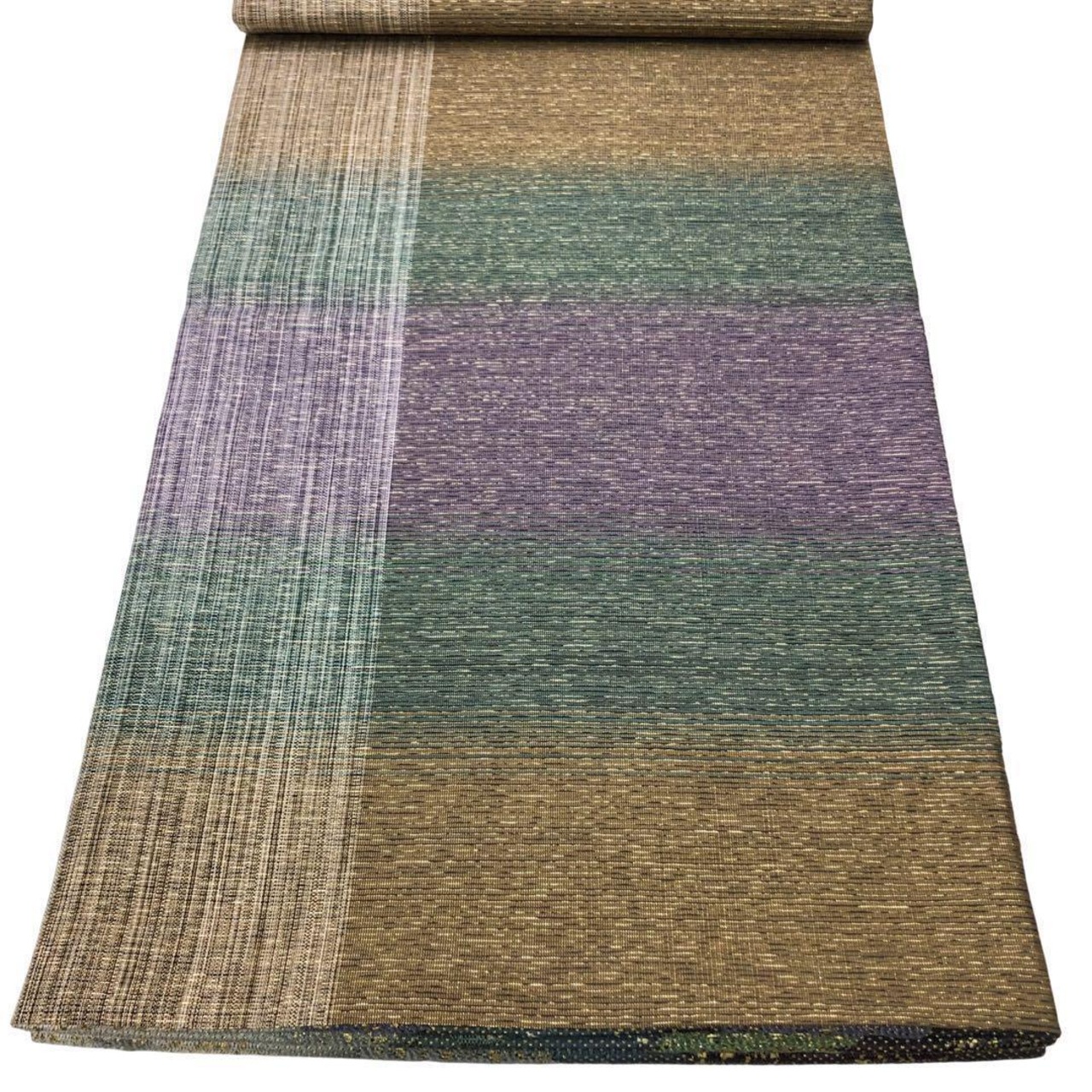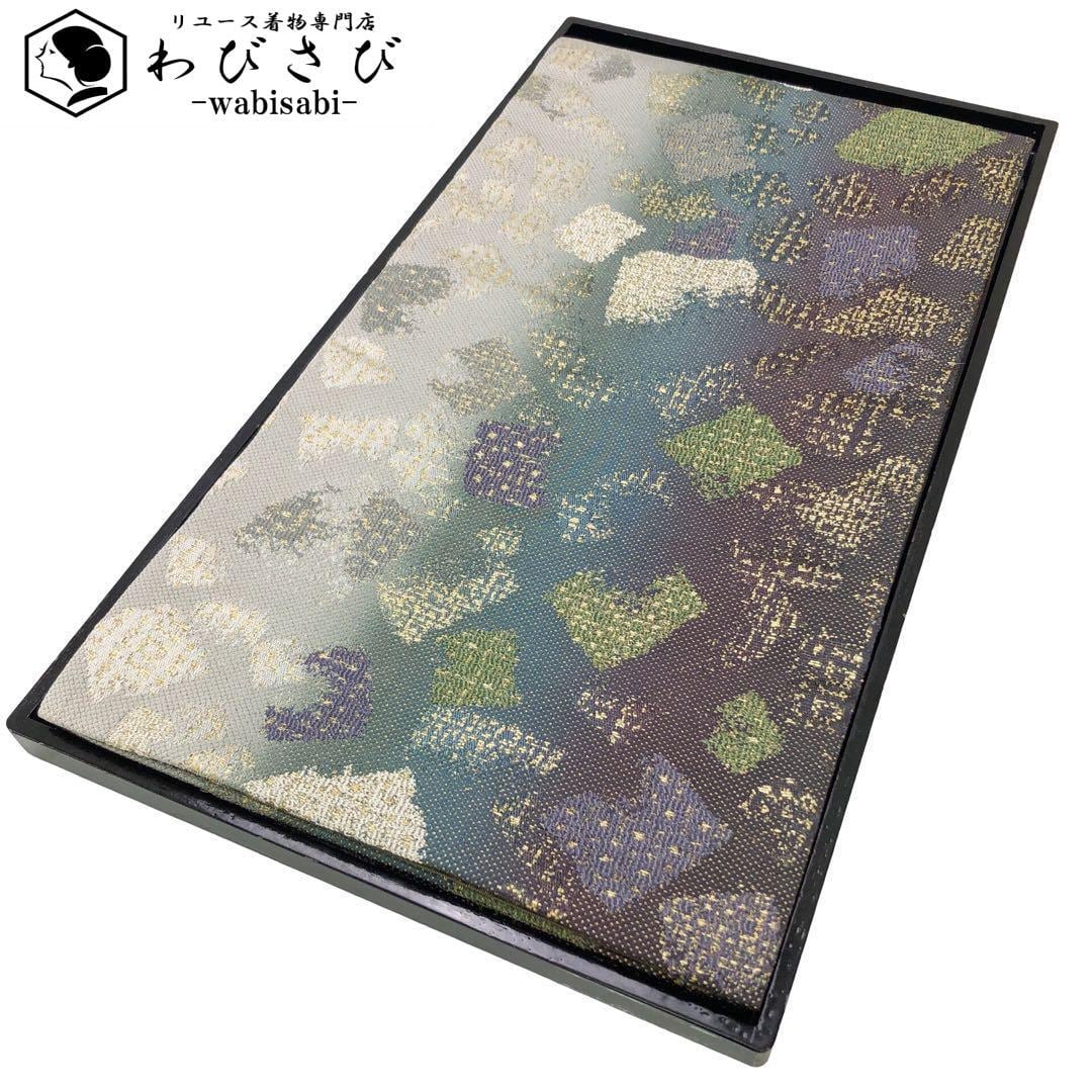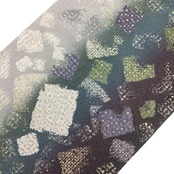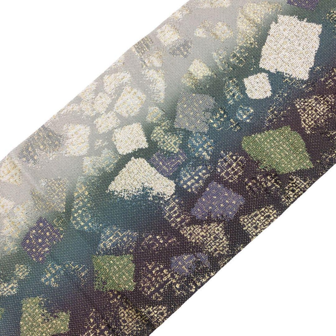 本泥染の雰囲気の良いグラデーションのお色味に多様な四角の抽象模様がデザインされた素敵な柄裄のお品でございます。