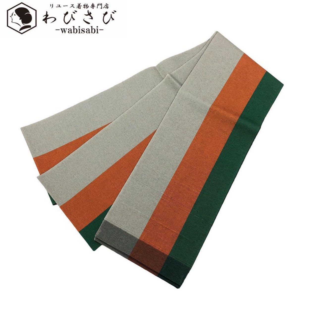 半幅帯 単衣 縦縞模様 灰色 D-2040 着物 きもの kimono 和服 和装 中古 リサイクル着物 【送料無料】