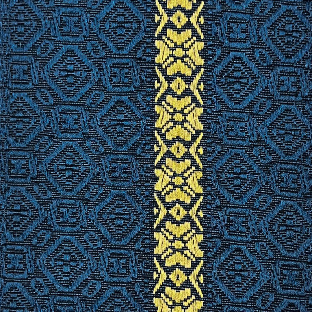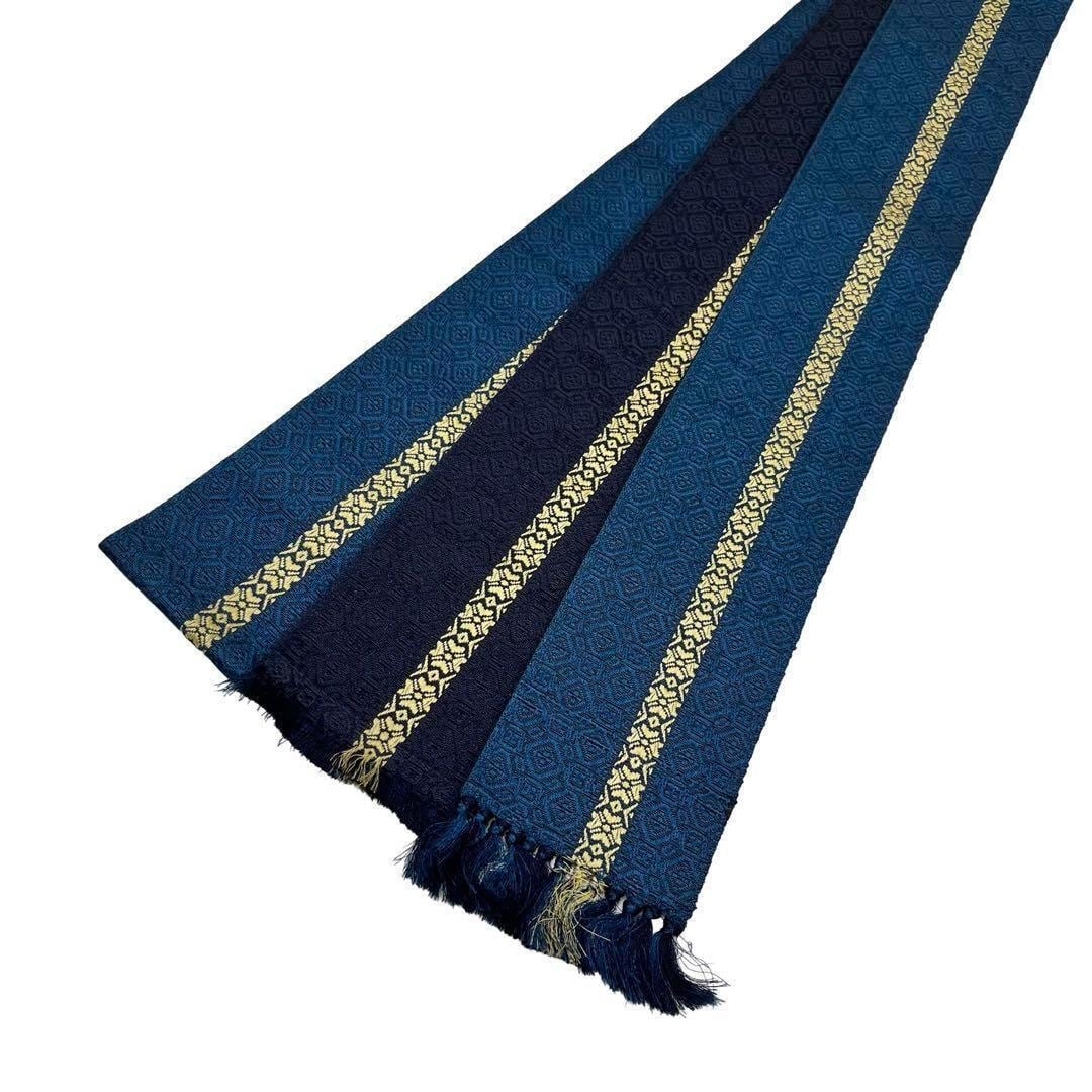 濃藍色ベースの両面で僅かに濃淡の異なるお色味、美しい縦縞の織模様がデザインされた素敵なお品でございます。