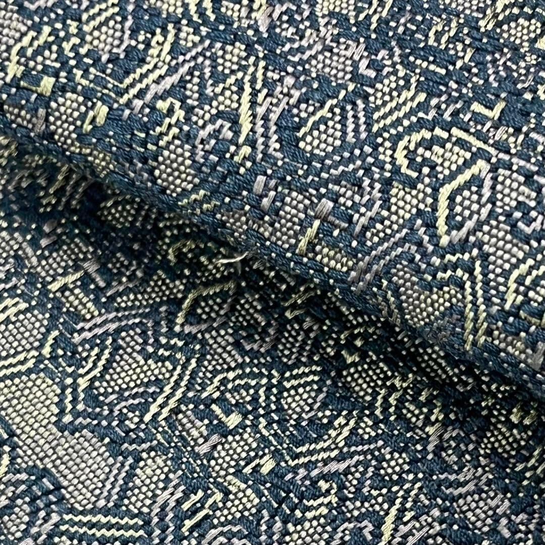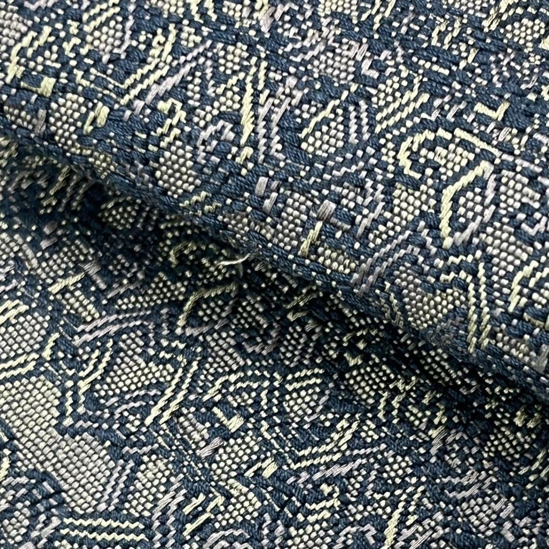 鉄納戸色のお色味に抽象織模様の柄裄がデザインされた素敵なお品でございます。