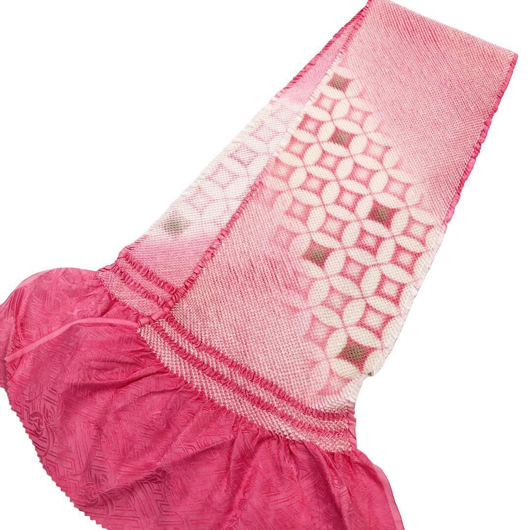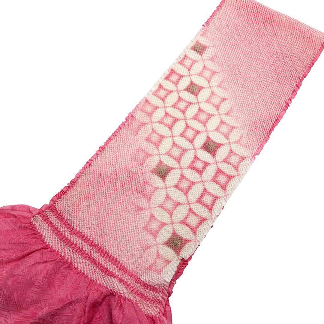 和装小物 帯揚げ 正絹 総絞り 暈し 七宝柄 桃色 振袖 C-5599 着物 きもの kimono 和服 和装 中古 リサイクル着物 【送料無料】